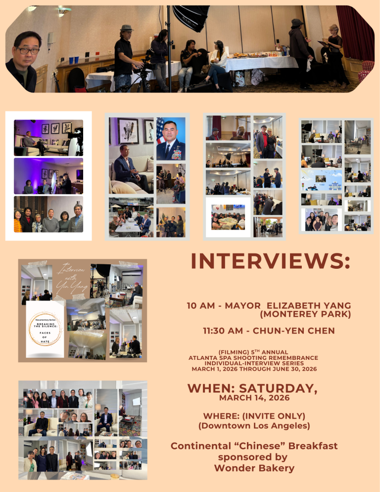 5th Annual Atlanta Spa Shooting Remembrance (Filming Individuals - 8+ Panels will be FILMED on Sat June 13, 2026 and Sun June 14, 2026)